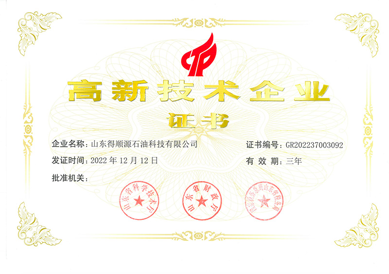 山東得順源石油科技有限公司成立于2006年,注冊資金壹億伍仟柒佰萬元整,位于山東東營,是以油田化學(xué)品研發(fā)、生產(chǎn)和應(yīng)用為主的專業(yè)化高新技術(shù)企業(yè),通過了國家級專精特新“小巨人”、山東省“一企一技術(shù)”研發(fā)中心認定。公司業(yè)務(wù)包含油田化學(xué)品研發(fā)與技術(shù)服務(wù)、油田化學(xué)品生產(chǎn)與銷售、鉆井液技術(shù)服務(wù)等業(yè)務(wù)領(lǐng)域。擁有一批自主知識產(chǎn)權(quán)的專項技術(shù)和特色產(chǎn)品。